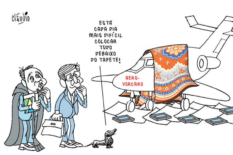 “Vai faltar tapete para a operação abafa“, escreve, ou vaticina, o autor da charge no seu traço inconfundível para o jornal Folha de S. Paulo, Cláudio