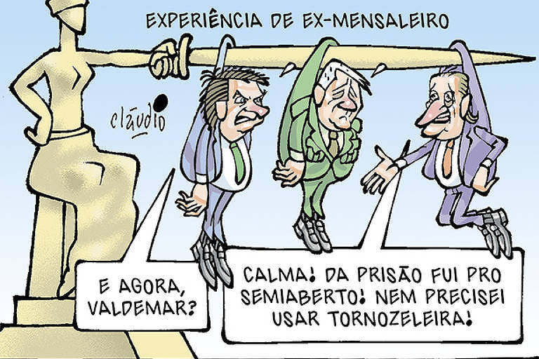 Esta charge de Cláudio de Oliveira é para a edição de 23 de novembro de 2024 do jornal Folha de S. Paulo. Jair Messias Bolsonaro,