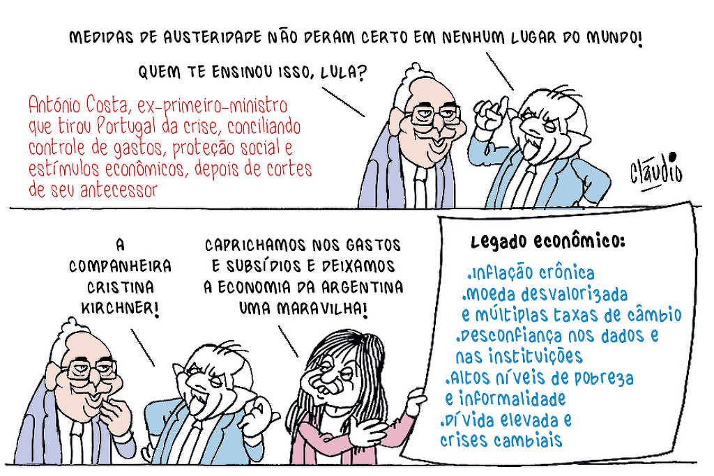 A charge elucidativa do economista Lula é de Cláudio Oliveira, para a edição de 04.07.2025 do jornal Folha de S. Paulo (nem tanto ao mar