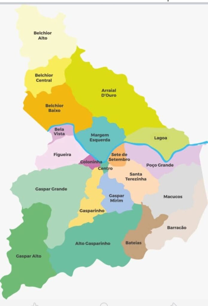 Um retrato VIII. Qual a razão da publicação do mapa de Gaspar neste espaço? Para orientar os estrangeiros importados pelos de “boas mãos” que trabalham na prefeitura de Gaspar quais são oficialmente os bairros de Gaspar. E os políticos daqui, que os inventam em seus discursos nominações que não existem. Muda, Gaspar!
