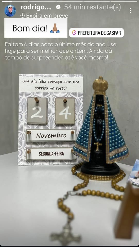 Rezando. Nas redes sociais, a política e resultados práticos de políticos e gestores públicos já estão sendo substituídos por rezas e pedidos de proteção espiritual. A imagem ao lado foi postada pelo vice-prefeito de Gaspar, o engenheiro Rodrigo Boeing Althoff, Republicanos. Sintomático.