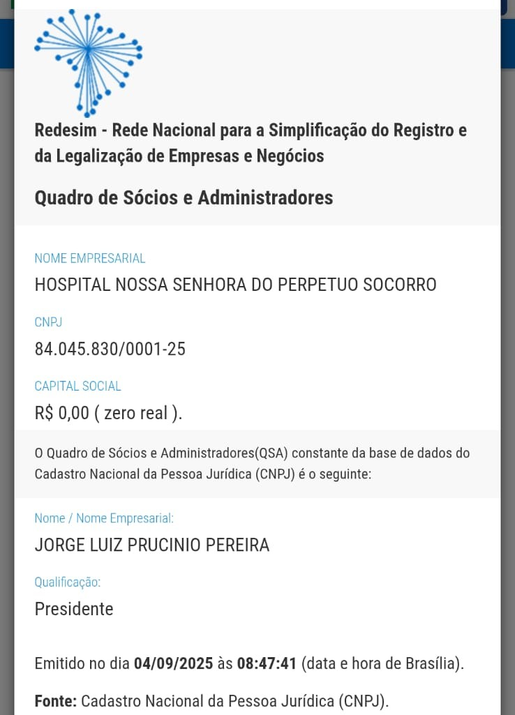 Quem vai à Receita Federal, descobre que o presidente do Hospital Nossa Senhora do Perpétuo Socorro é nada mais, nada menos do que Jorge Luiz Prucino Pereira, de muda para o PSD, o pau para toda obra de Kleber Edson Wan Dall, MDB (chefe de gabinete, secretário de Planejamento Territorial, Secretário da Fazenda e Gestão Administrativa e interventor do Hospital de Gaspar), o mesmo dos áudios cabulosos com Jean Alexandre dos Santos, PSD (secretário de Obras e Serviços Urbanos e Planejamento Territorial).